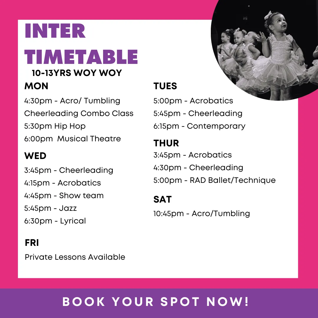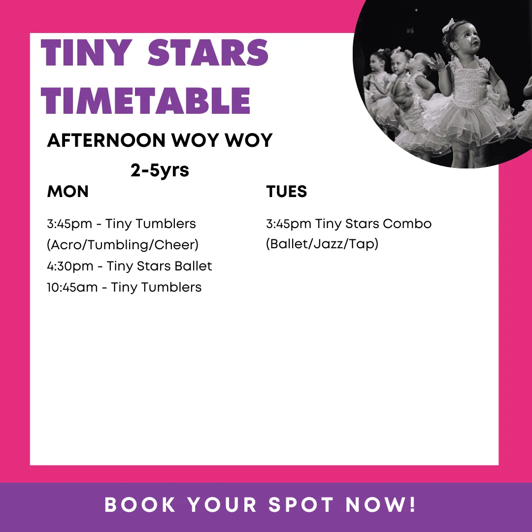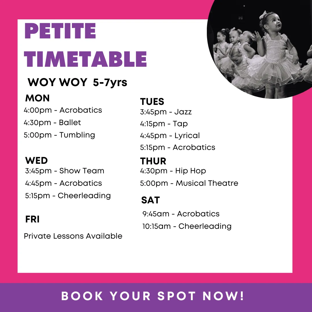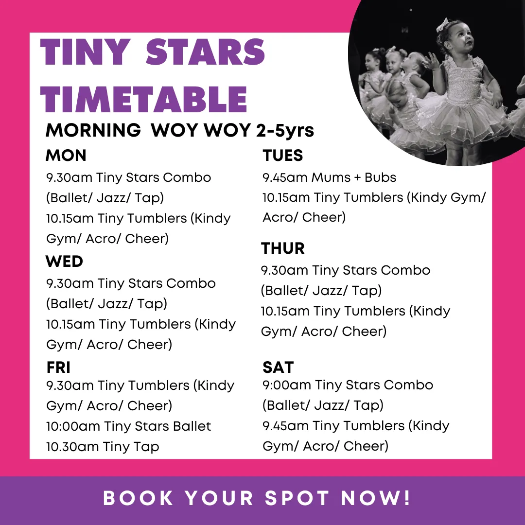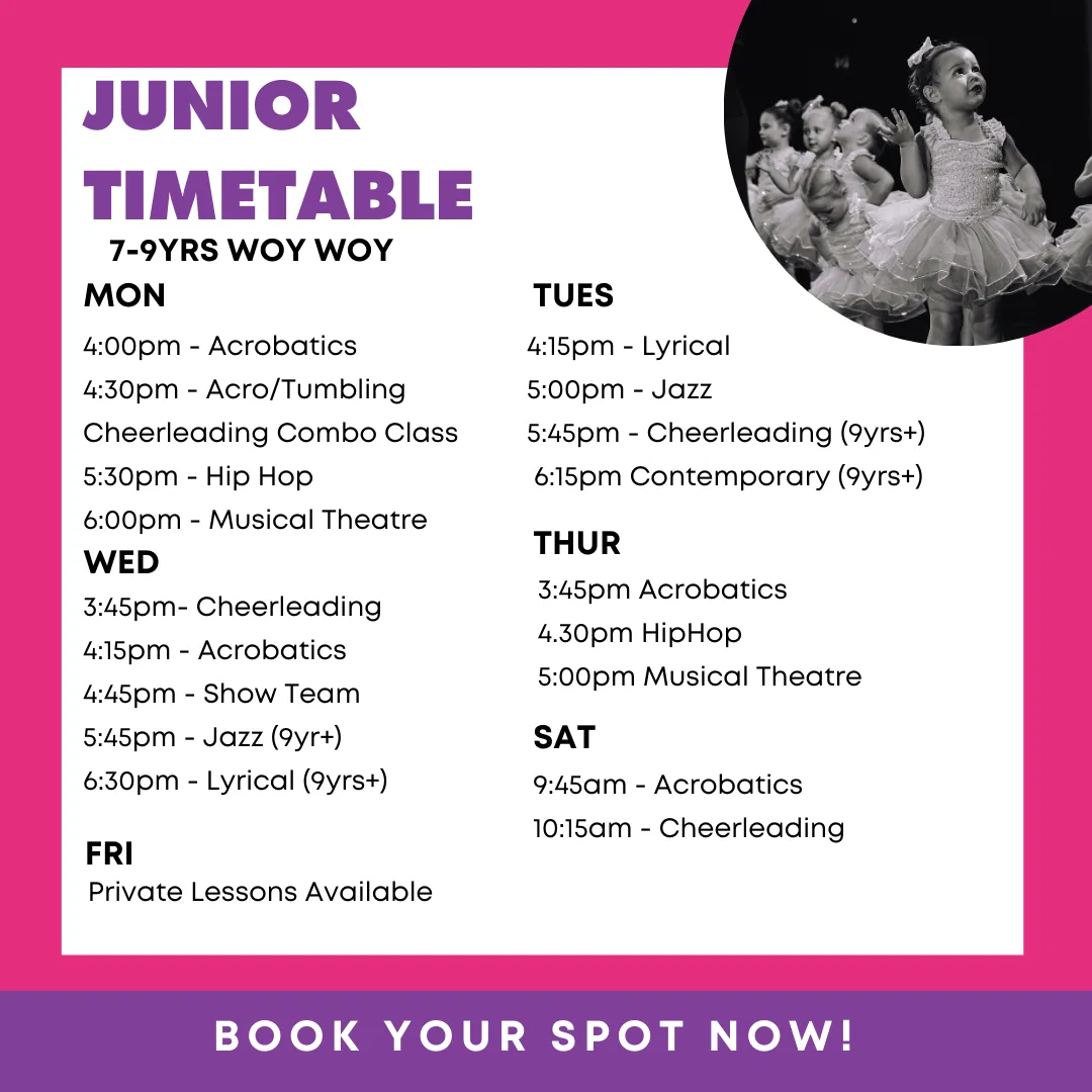 Take a look at the timetable below for your child's age group and book your child's spot! Choose as many classes as you like!